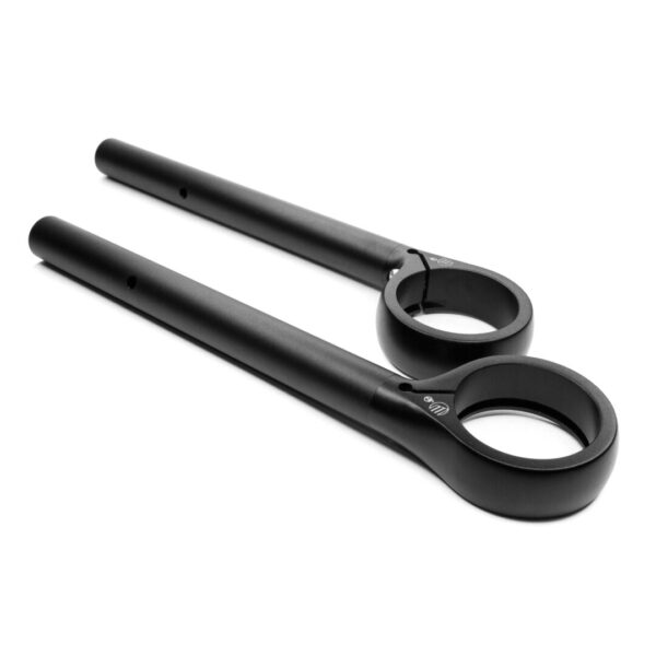 Handlebars are designed by MessnerMoto and they are CNC machined from 6082-T6 billet aluminum. Control levers are designed by MessnerMoto and they are CNC machined from 6082-T6 billet aluminum. Mini Push Buttons for handlebars are designed by MessnerMoto and they are CNC machined from 6082-T6 billet aluminum. Throttle control is designed by MessnerMoto and it is laser cut and CNC machined.